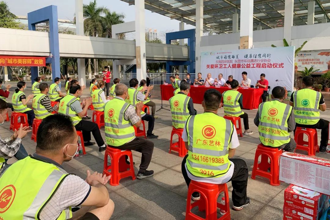 3月19日上午,我们东莞市环境清洁行业协会联合东莞国岸医院在协会侧面广场举办了“城市因您而美,健康伴您同行”——关爱环卫工人健康公益工程启动仪式。东莞国岸医院李绍国院长、侯建军副院长,我会陈树良会长、刘梦醒常务副会长、雷静副会长、胡有源秘书长,50名环卫工人代表,媒体记者朋友们以及相关工作人员近80人参加了活动。胡有源秘书长主持了启动仪式。