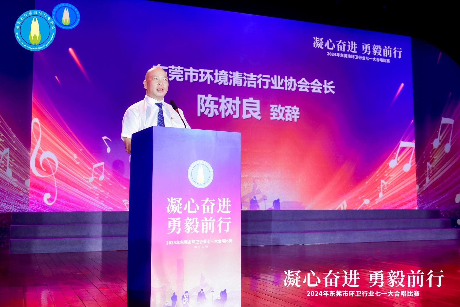 会长陈树良代表协会首先致辞,他向在场的所有领导、嘉宾、环卫行业的全体同仁表示了热烈的欢迎,对参赛选手们的辛勤付出表示衷心的感谢,他讲到协会党支部自2016年成立以来,连续多年举办庆七一大合唱比赛,赢得了政府、媒体和社会各界的高度关注与赞扬。今天的“凝心聚力,勇毅前行”庆七一大合唱比赛,不仅引导环卫企业和工作者关注政治和思想建设,还增强了行业的文化自信,引领环卫企业永葆初心、推动环卫事业发展。未来,我们也将不忘初心,牢记使命,为城市环境卫生建设和国家富强贡献力量。