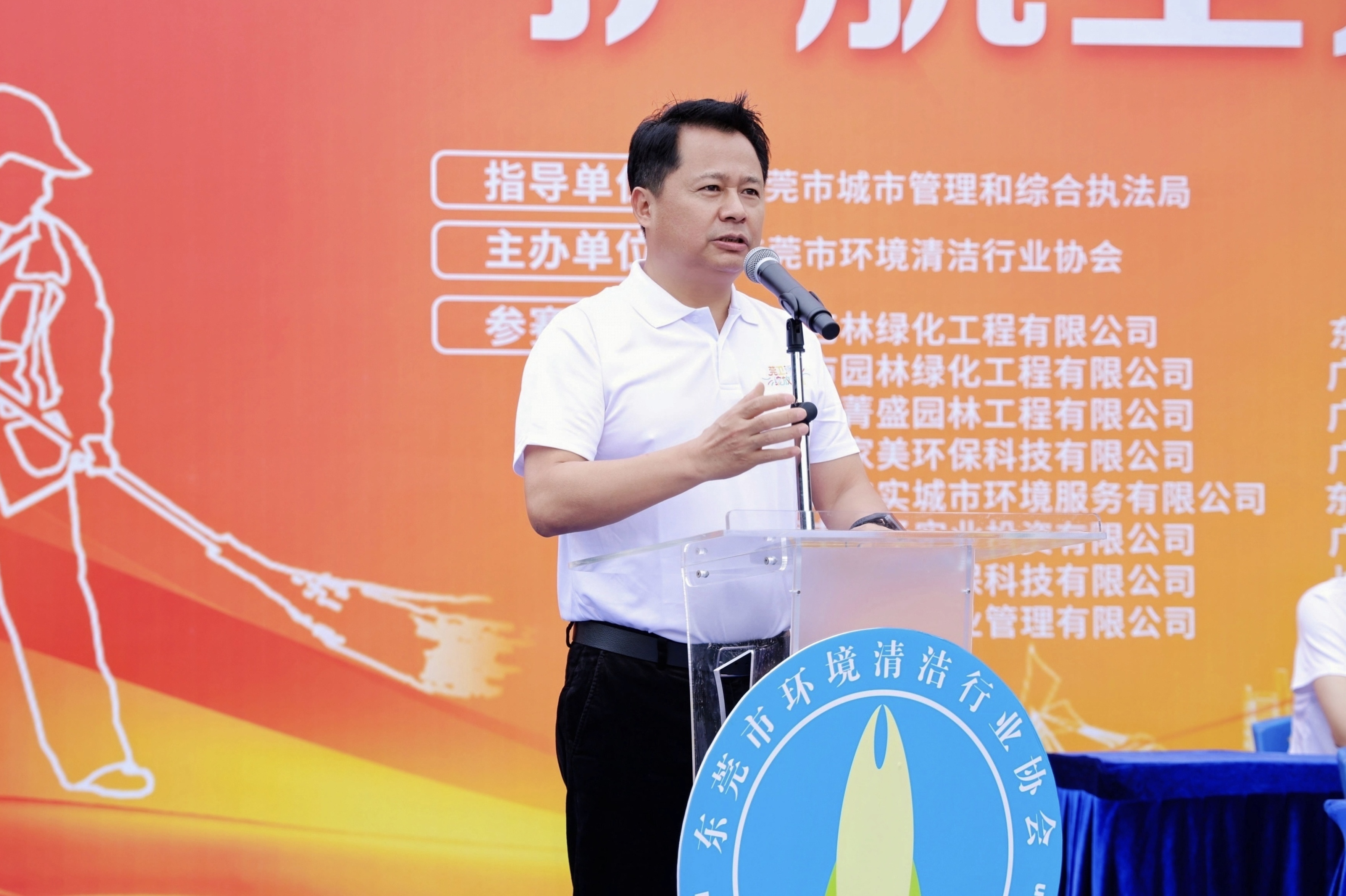 10月21日上午,由东莞市城市管理和综合执法局指导,东莞市环境清洁行业协会主办的“致敬环卫人,护航全运会”——庆祝广东省第32个环卫工人节东莞市第十一届环卫工人运动会暨趣味游园会在旗峰公园西门广场隆重举行。市城市管理综合执法局三级高级主办胡孔齐、市容环卫科科长杨婧婧、副科长周秀芳,市环清协会会长陈树良,常务副会长刘梦醒、邓燕银、钟越梅,副会长及单位代表李向前、程强、孔建东、龙文、杨小芳、叶伟强、郑裕源,以及市容环卫科相关负责同志、协会秘书处、全市15支环卫代表队近400人共同参与这场充满活力与温情的行业盛会。