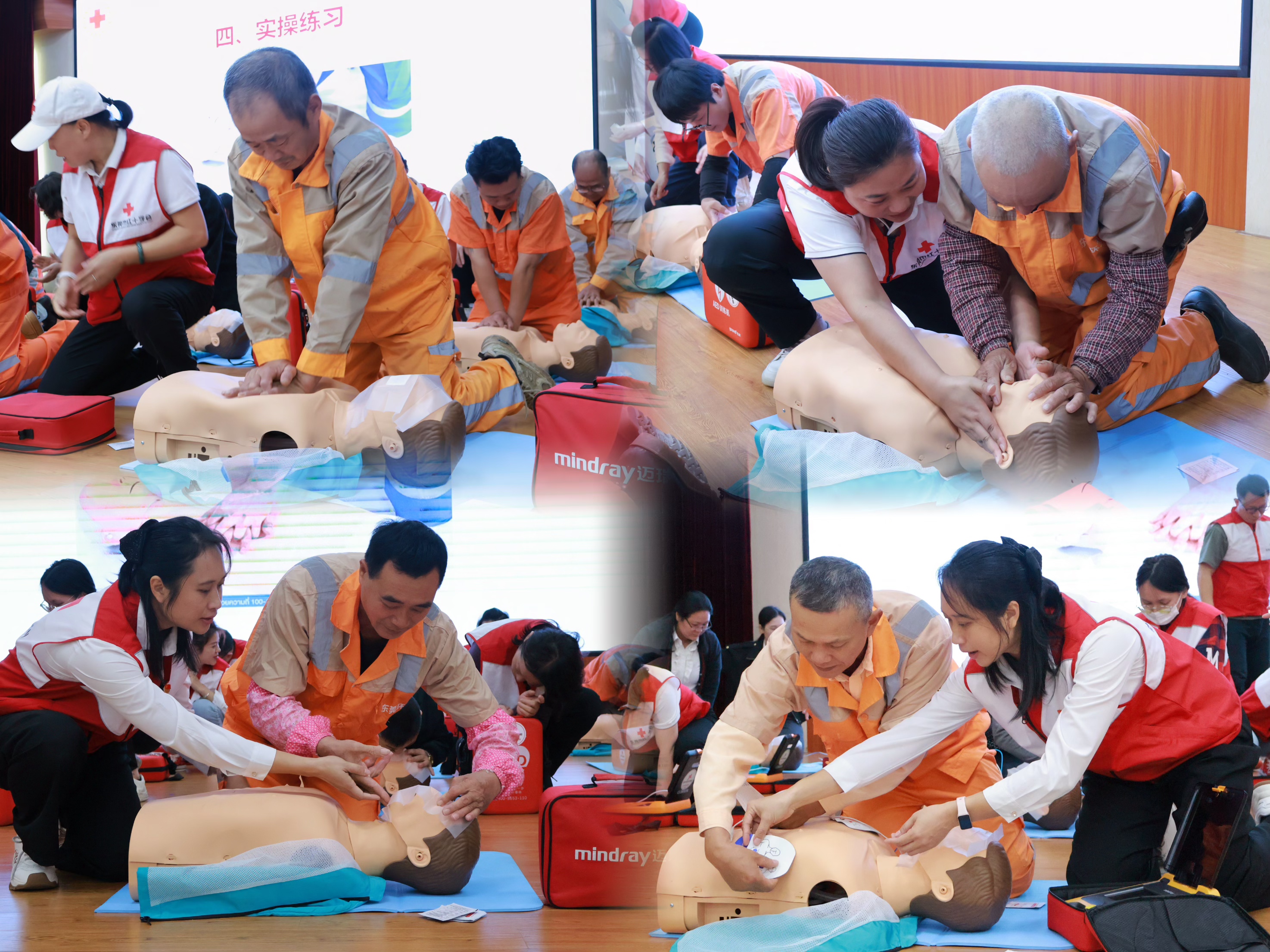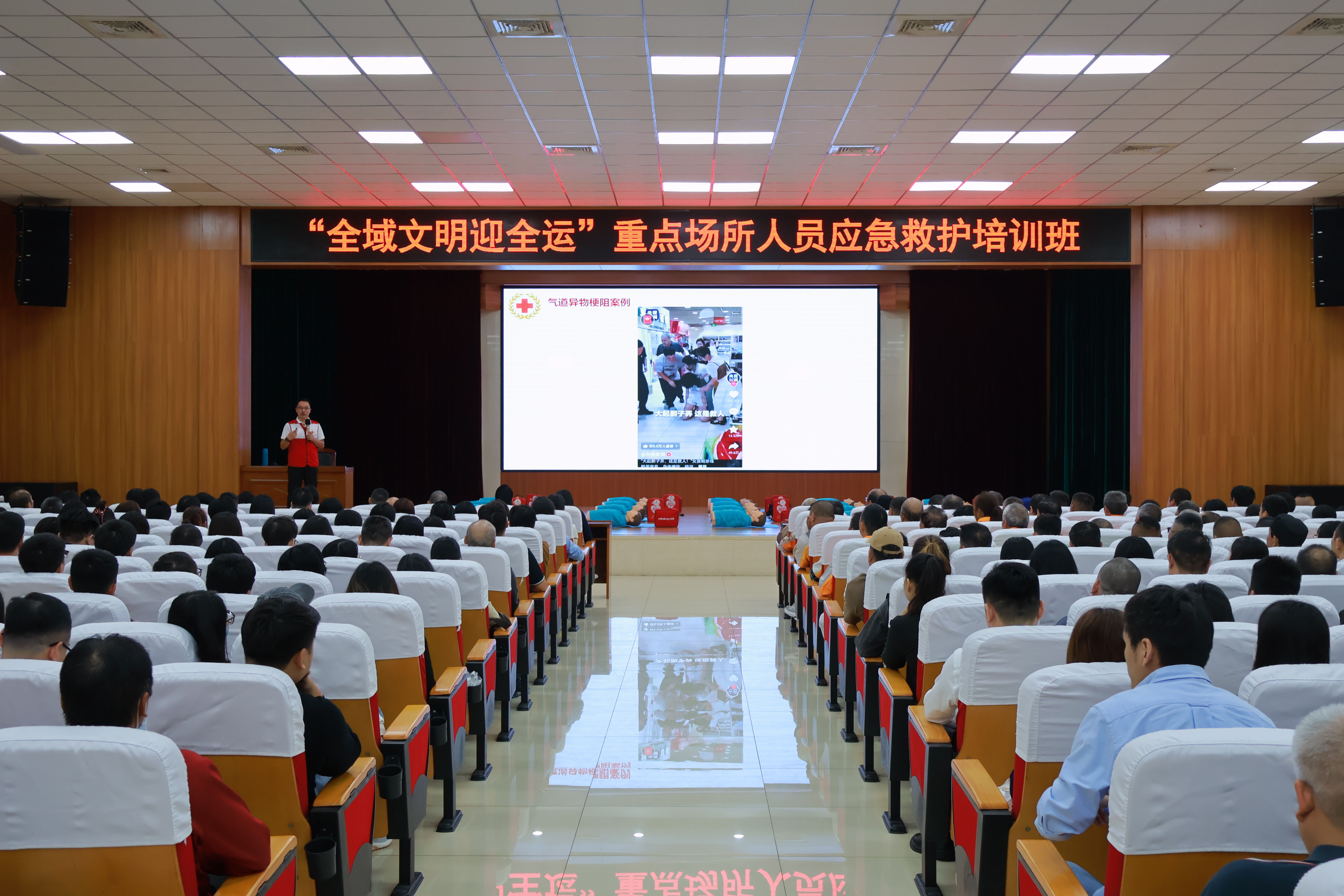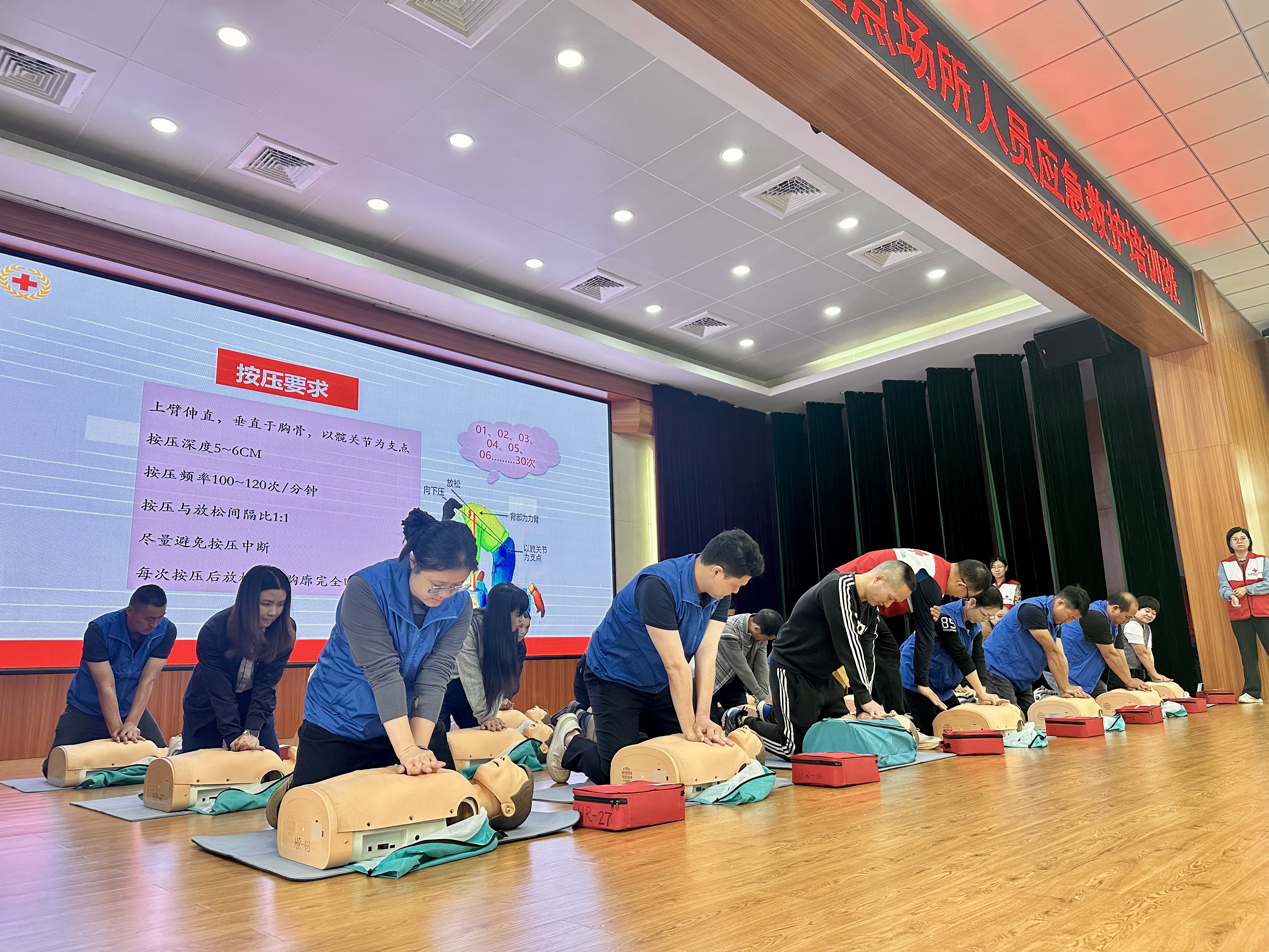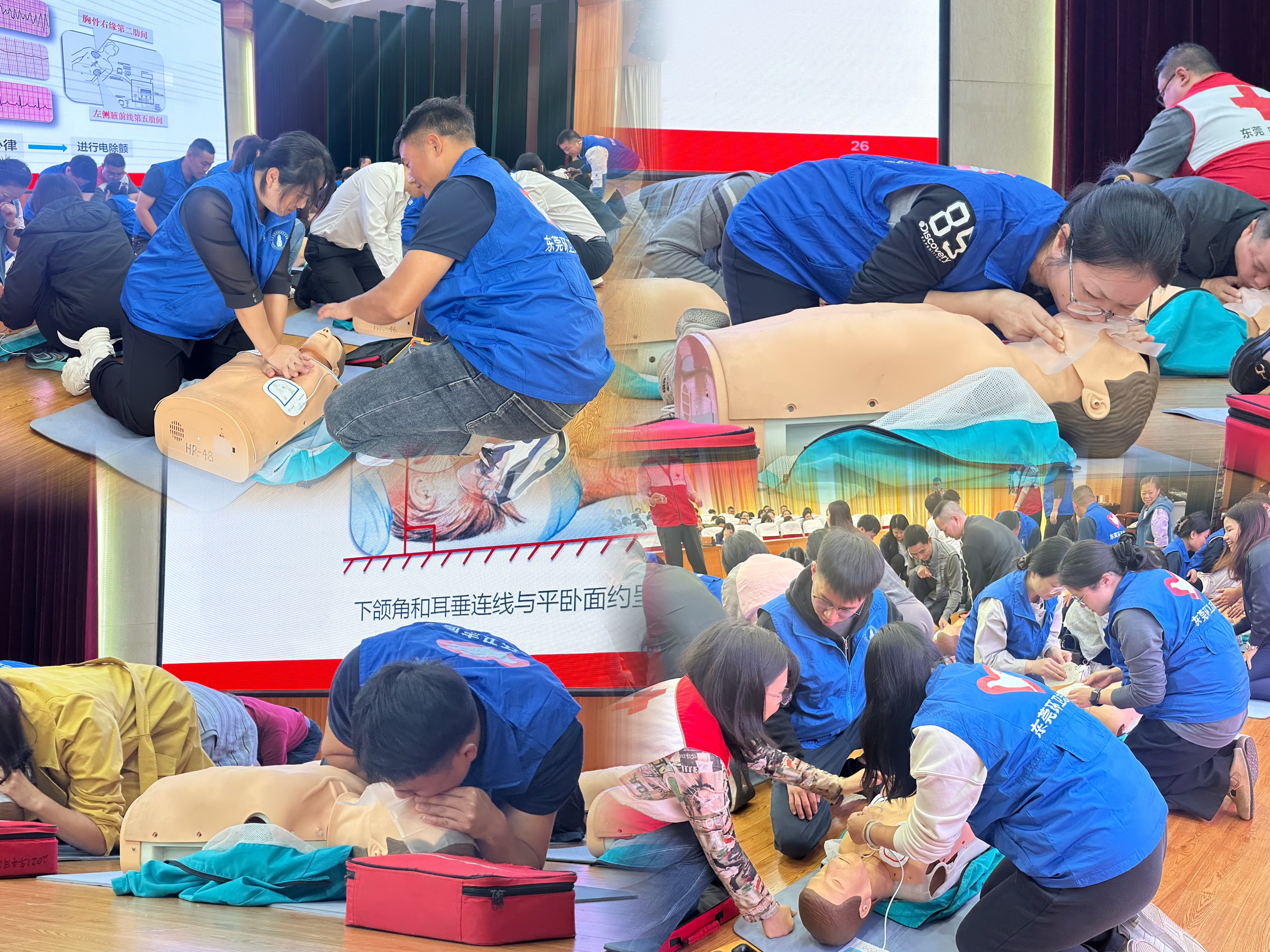 本次培训紧扣全运会服务保障实际,聚焦公共场所可能面临的突发状况,设置了以心肺复苏(CPR)、自动体外除颤器(AED)使用、气道异物梗阻急救法等为核心内容的实用课程。为确保培训效果,市红十字会采用了“理论精讲+实物演示+实操演练”相结合的立体化教学模式,由专业救护师手把手指导,帮助学员扎实掌握急救流程与技术要点。参训人员通过系统化、实战化的训练,进一步增强了应对突发事件的救援信心与核心技能。
