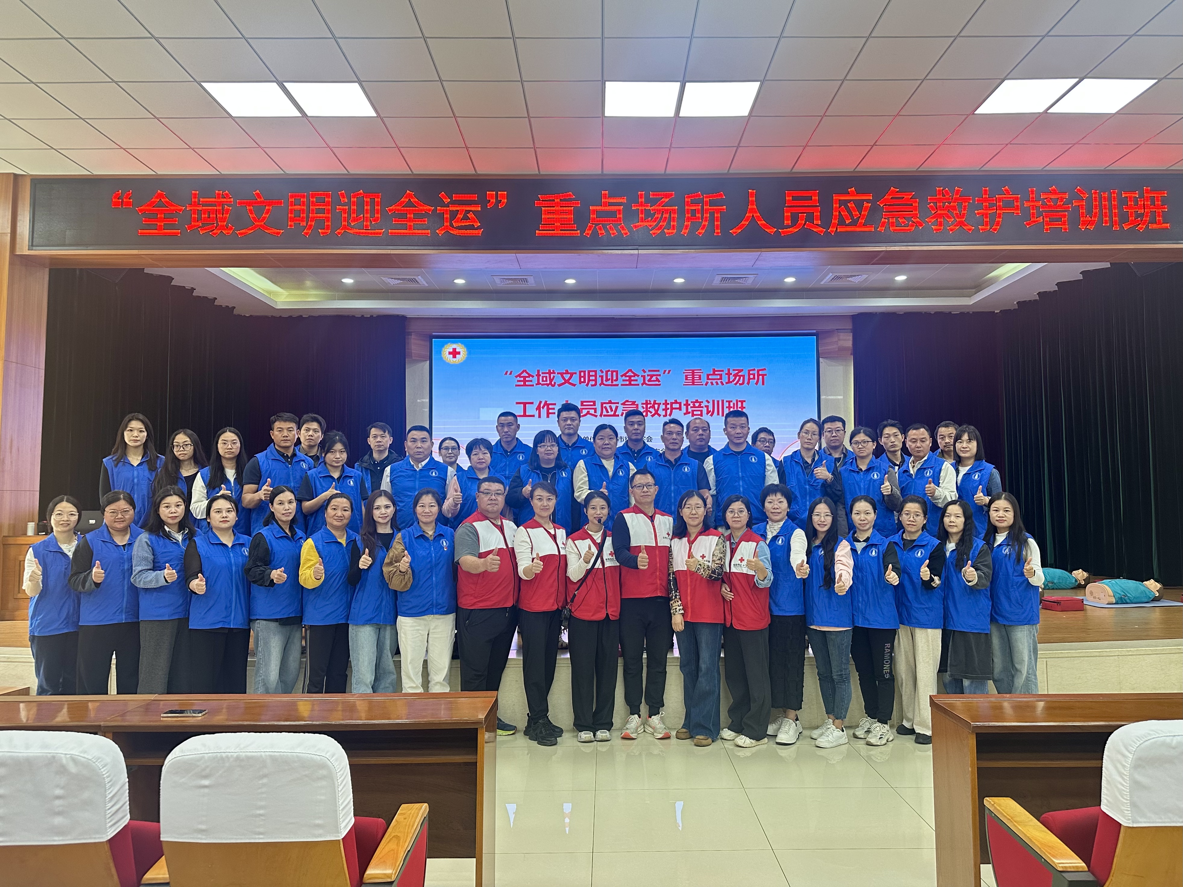 为积极响应并扎实推动我市“全域文明迎全运”百日攻坚行动,切实提升全运会期间重点场所的应急保障能力,我会分别于11月5日、11月6日组织了55名环卫志愿者和55名一线环卫工人参加了由市红十字会在市国防教育训练基地举办的“全域文明迎全运”重点场所工作人员应急救护培训班。