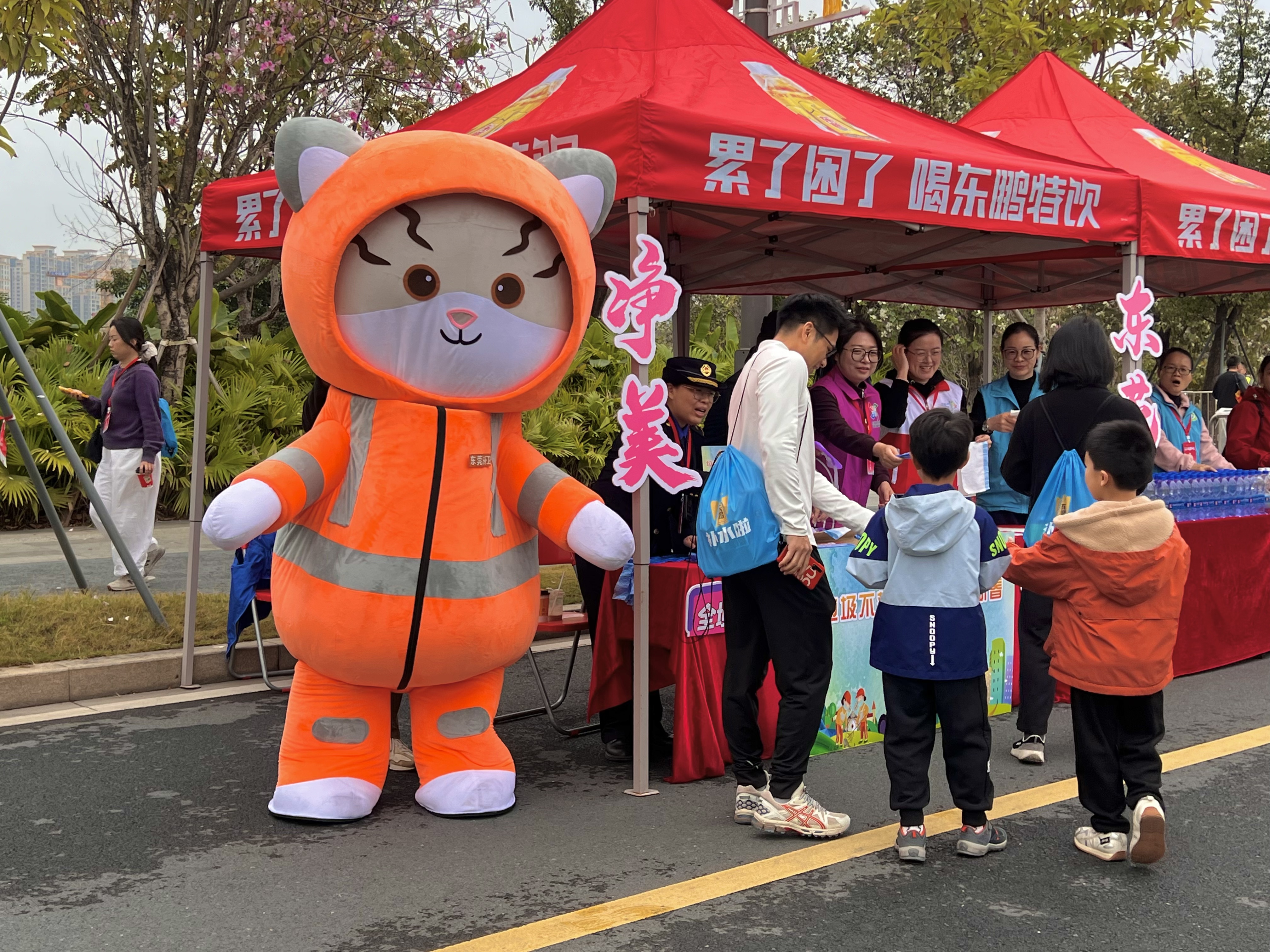 东莞环卫形象大使“MIJI猫”也在活动现场俏皮登场,它以活泼可爱的姿态与跑友们欢乐互动、亲切合影,在轻松愉快的氛围中传递环卫工作的价值,增进公众的理解与认同,让全域文明建设理念伴随每一步,融入每个人。